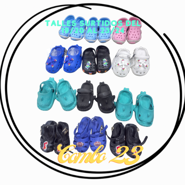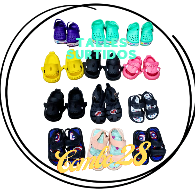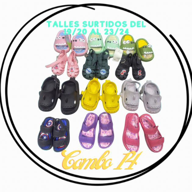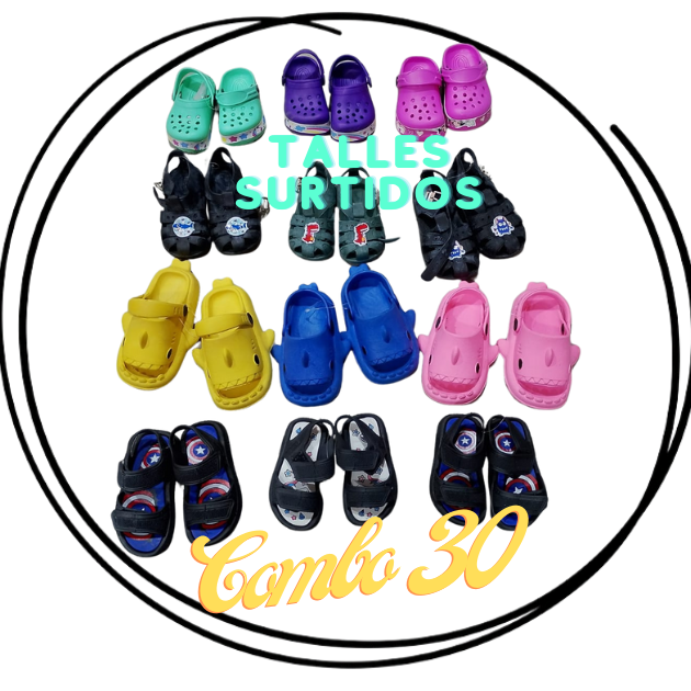 Combo de 12 pares de distintos modelos para niños, gomones, ojotas, sandalias, chanclas, etc, todo de excelente calidad, bien surtidos de talles, colores y diseños, ( en cada foto podras ver talles y número de combo para que elijas la opción a la hora de comprar). Todos son combos únicos.