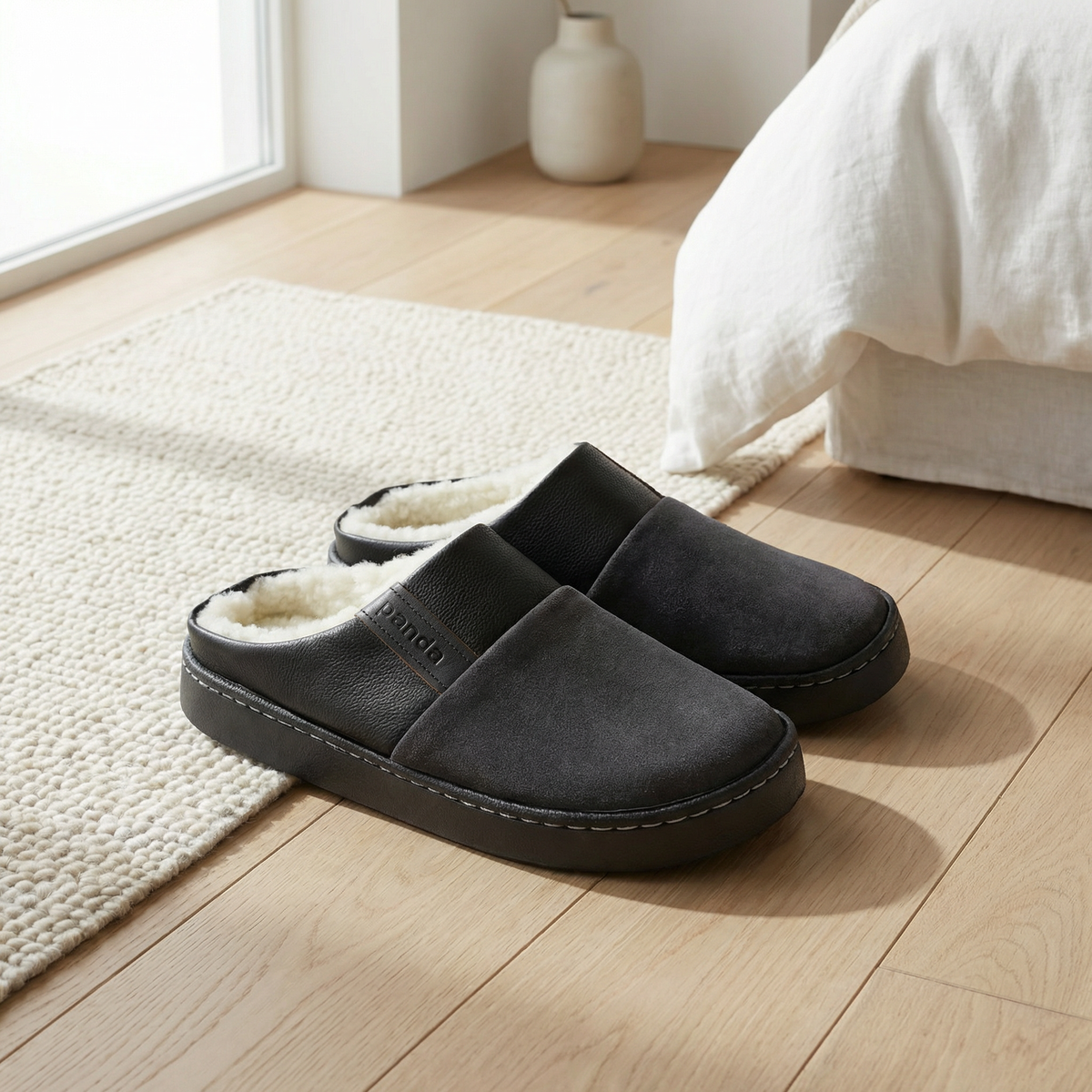 Pantufla Panda clásica base goma con abrigo dentro, cocida.