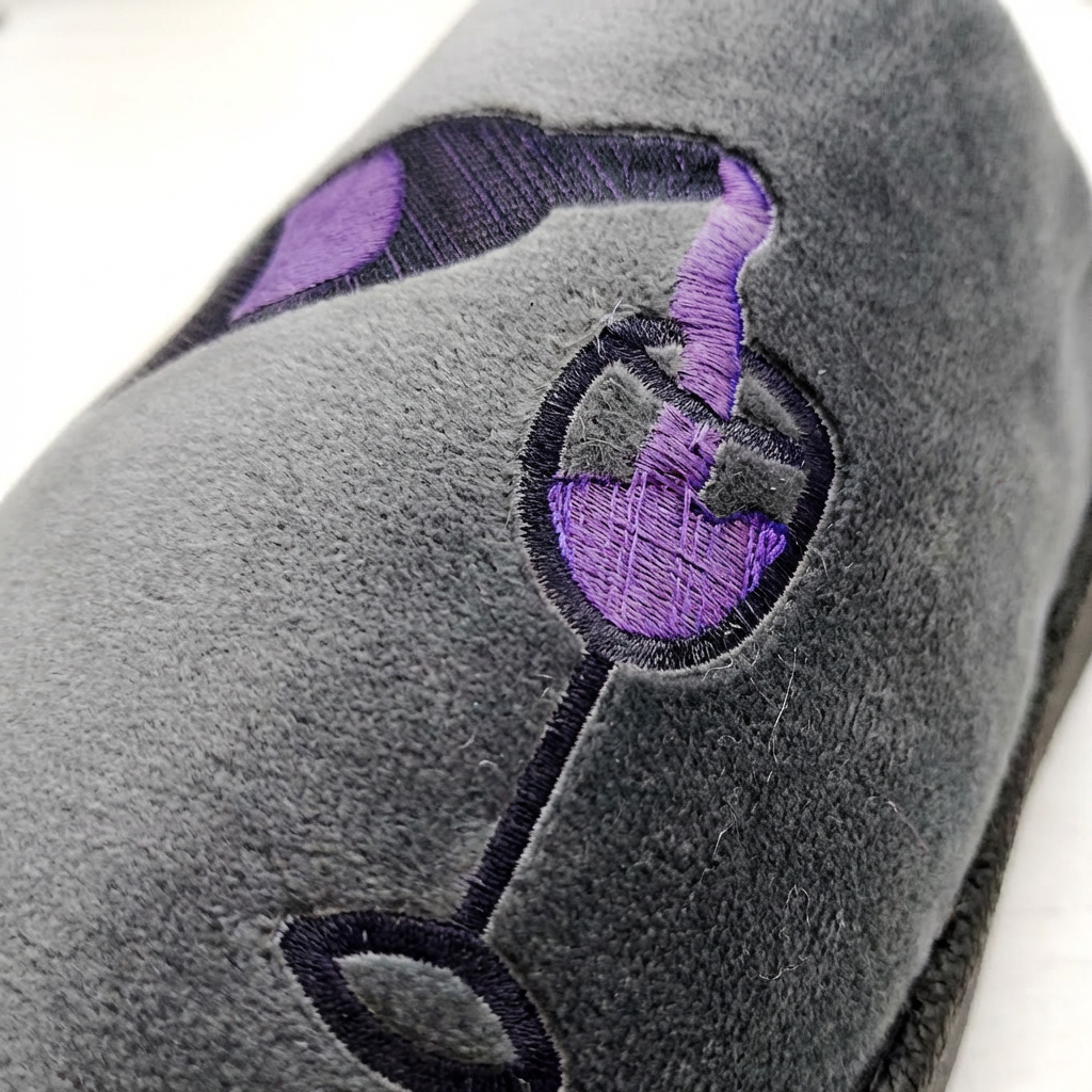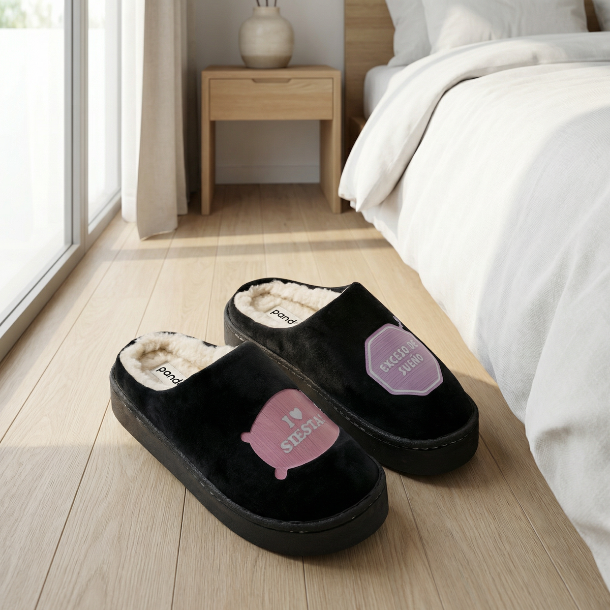 Pantufla Panda dama clásica bordadas base goma con abrigo dentro, cocida.