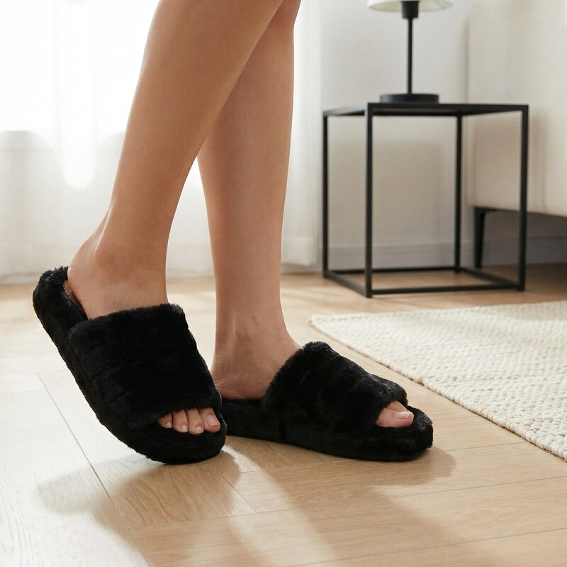 pack x 6 Pantuflon simil piel de conejo punta abierta 35/40