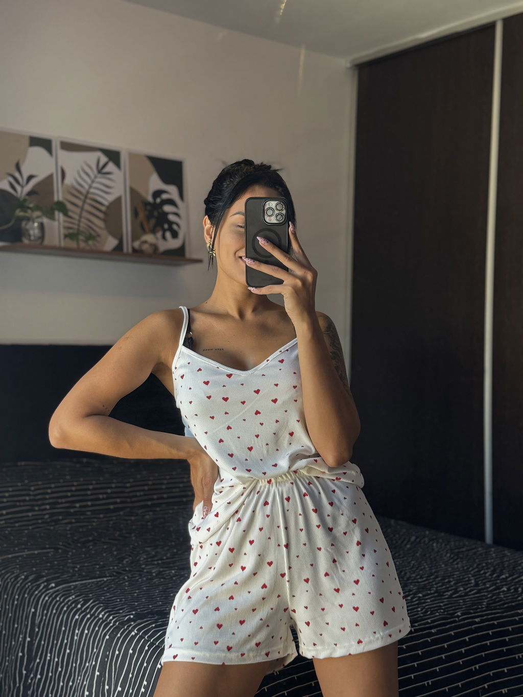 PIJAMA CORTO ADULTO MUSCULOSA MORLEY CORAZON FDO BLANCO