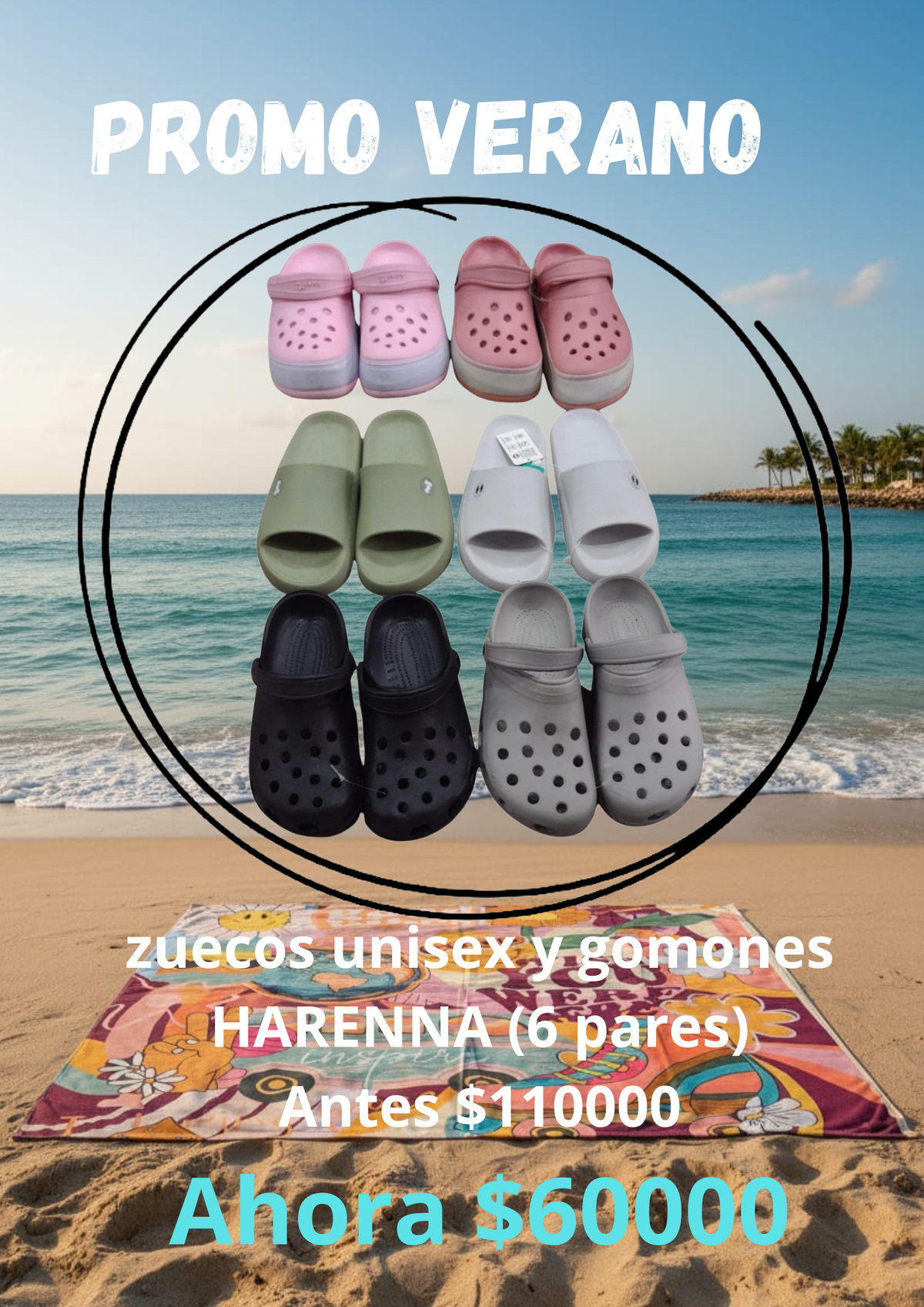 Promo premium zuecos y gomones HARENNA, 2 zuecos plataforma banda talles del 35/36 al 39/40 , 2 gomones soft lisos talles del 35/36 al 39/40 y 2 zuecos lisos unisex talles del 39/40 al 43/44, surtidos