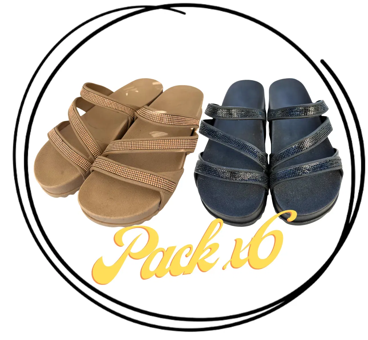 Fabricadas en PVC full plastic de alta calidad, ofrecen durabilidad y resistencia para el uso diario. Su diseño con tiras con brillos aporta un toque original y atractivo, dando el toque final con sus tiras cruzadas que aportan gran sujeción y confort.