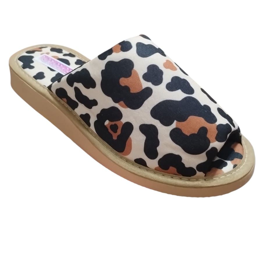 Pantufla dama verano jersey print SV punta abierta 35/40, cocidas.