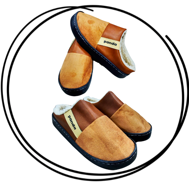 Pantufla Panda clásica base goma con abrigo dentro, cocida.