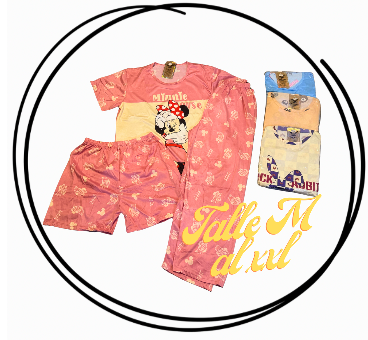 Pack x12 Pijamas dama 3 piezas sublimados premium, tela premium, modal con lycra, viene remera, pantalón largo y short. Talles M/L y XL/XXL. Calce super cómodo, tela elastizada, Fresca, diseños con colores vibrantes.