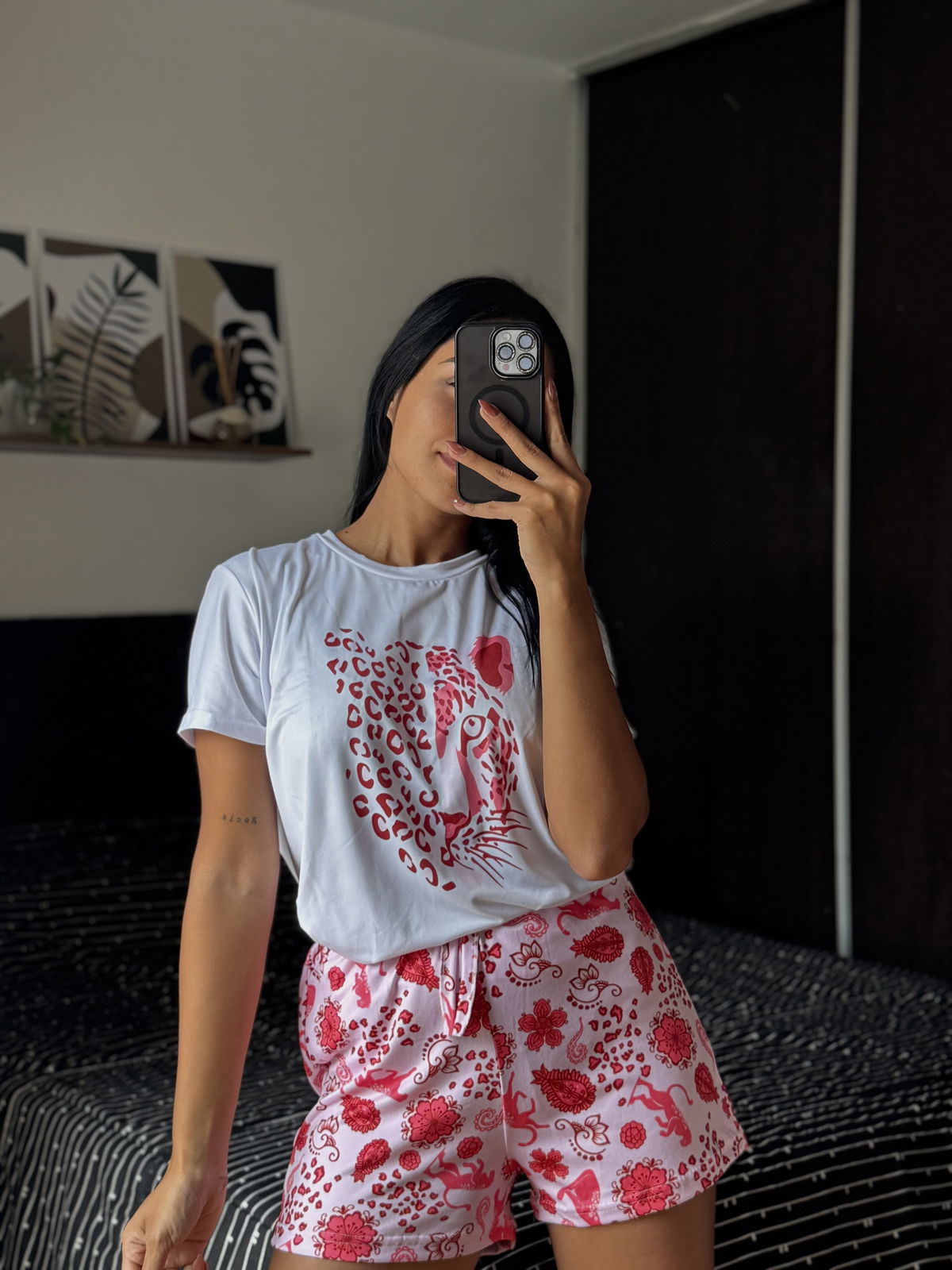 PIJAMA CORTO ADULTO LEOPARDO ROSA