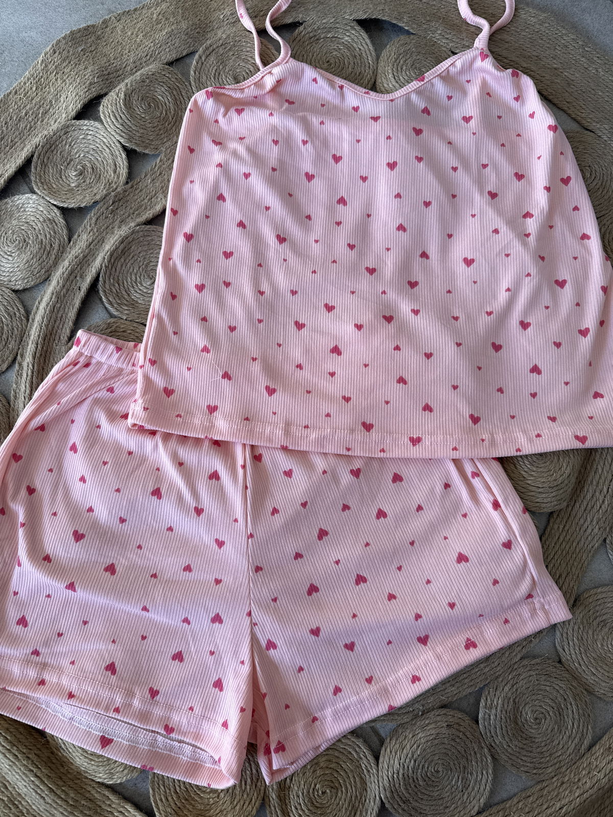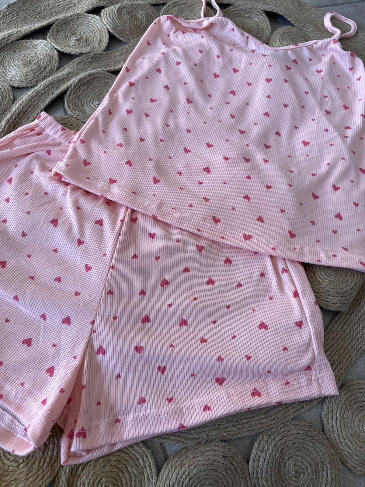 PIJAMA CORTO ADULTO MUSCULOSA MORLEY CORAZÓN FONDO ROSA