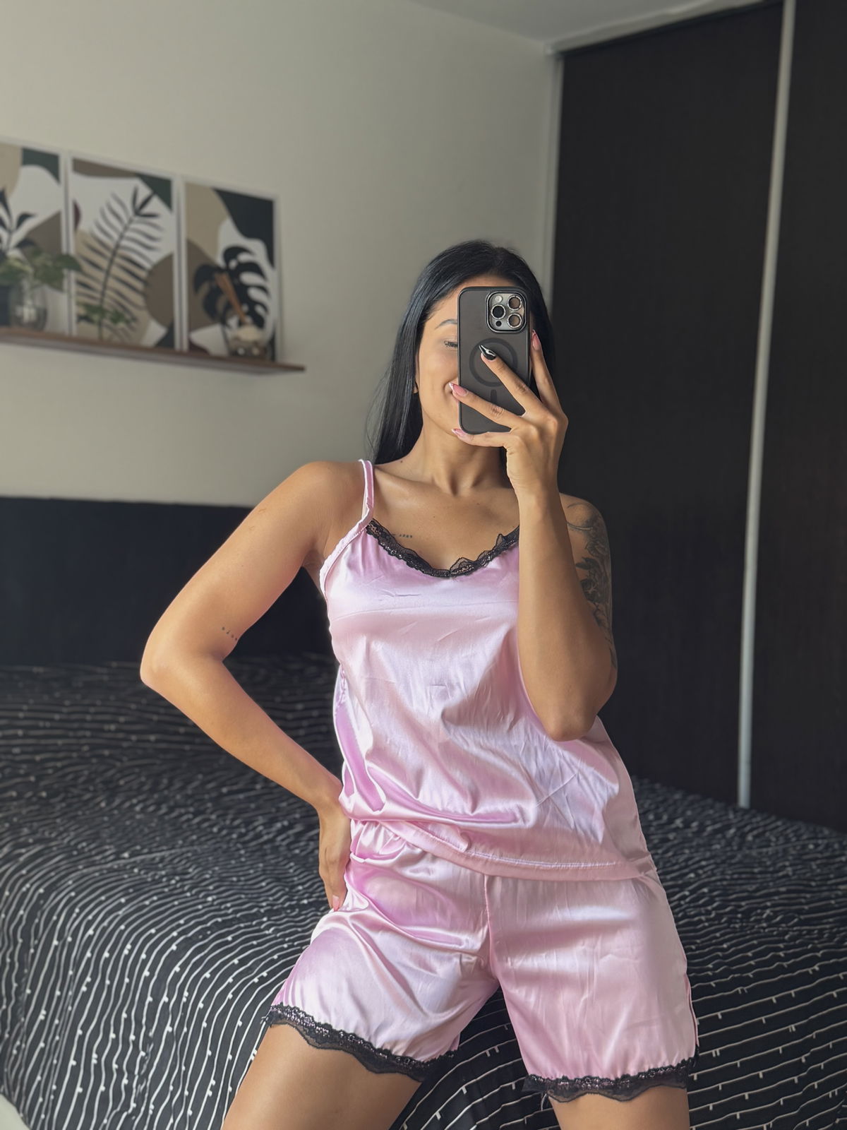 PIJAMA ADULTO CORTO MUSCULOSA SATÉN ROSA