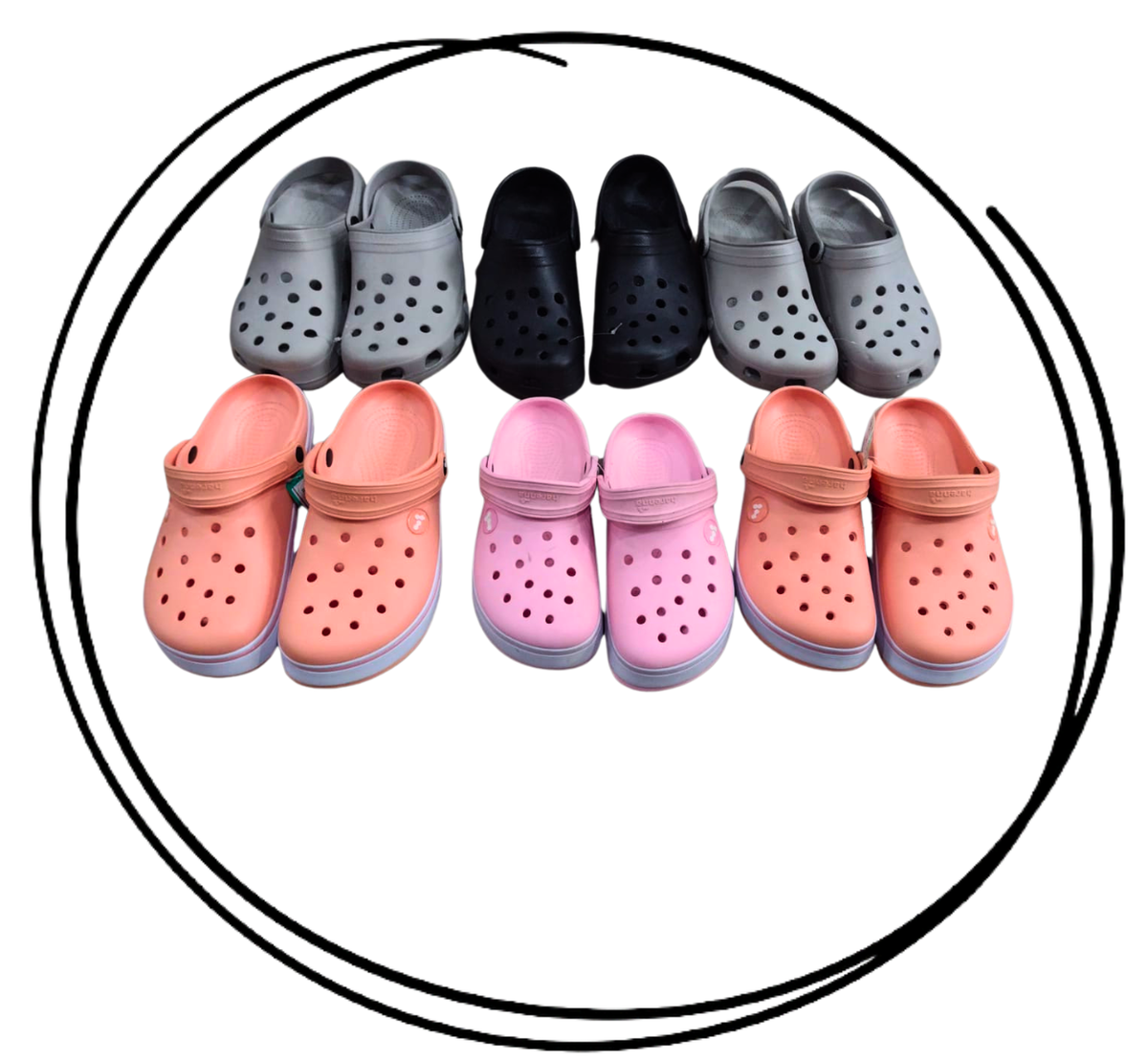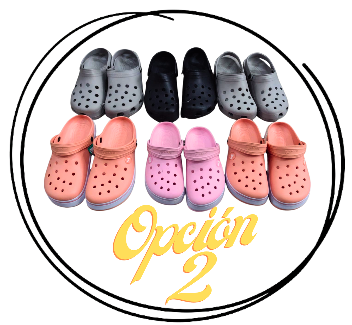 Promo premium zuecos HARENNA, 3 zuecos con banda bajos talles del 35/36 al 39/40 y 3 zuecos lisos unisex talles del 39/40 al 43/44, surtidos.