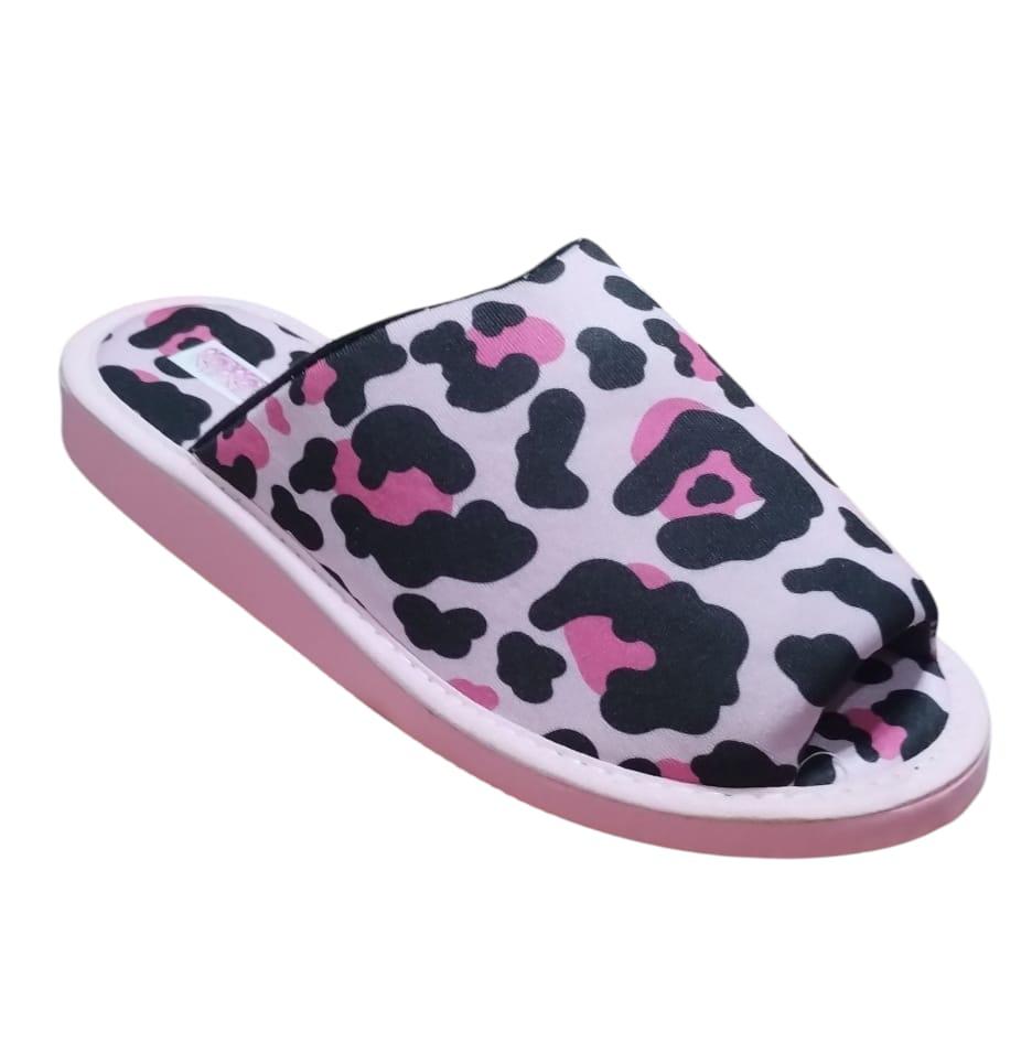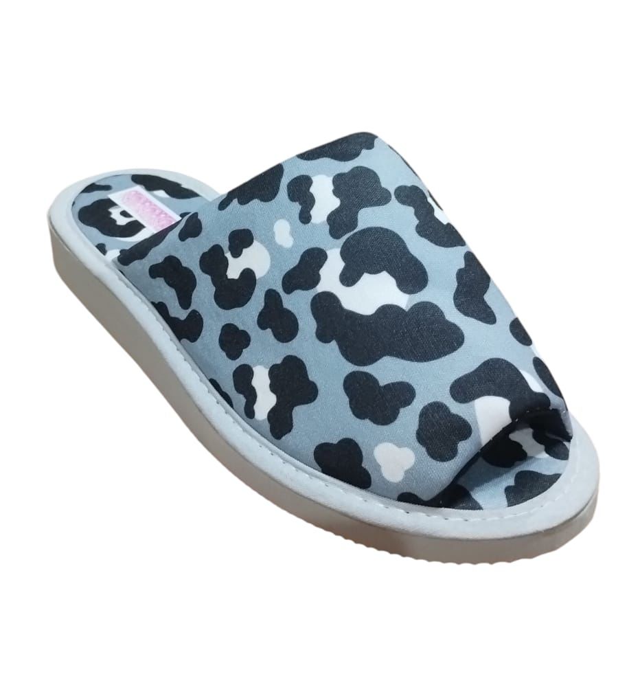 Pantufla dama verano jersey print SV punta abierta 35/40, cocidas.