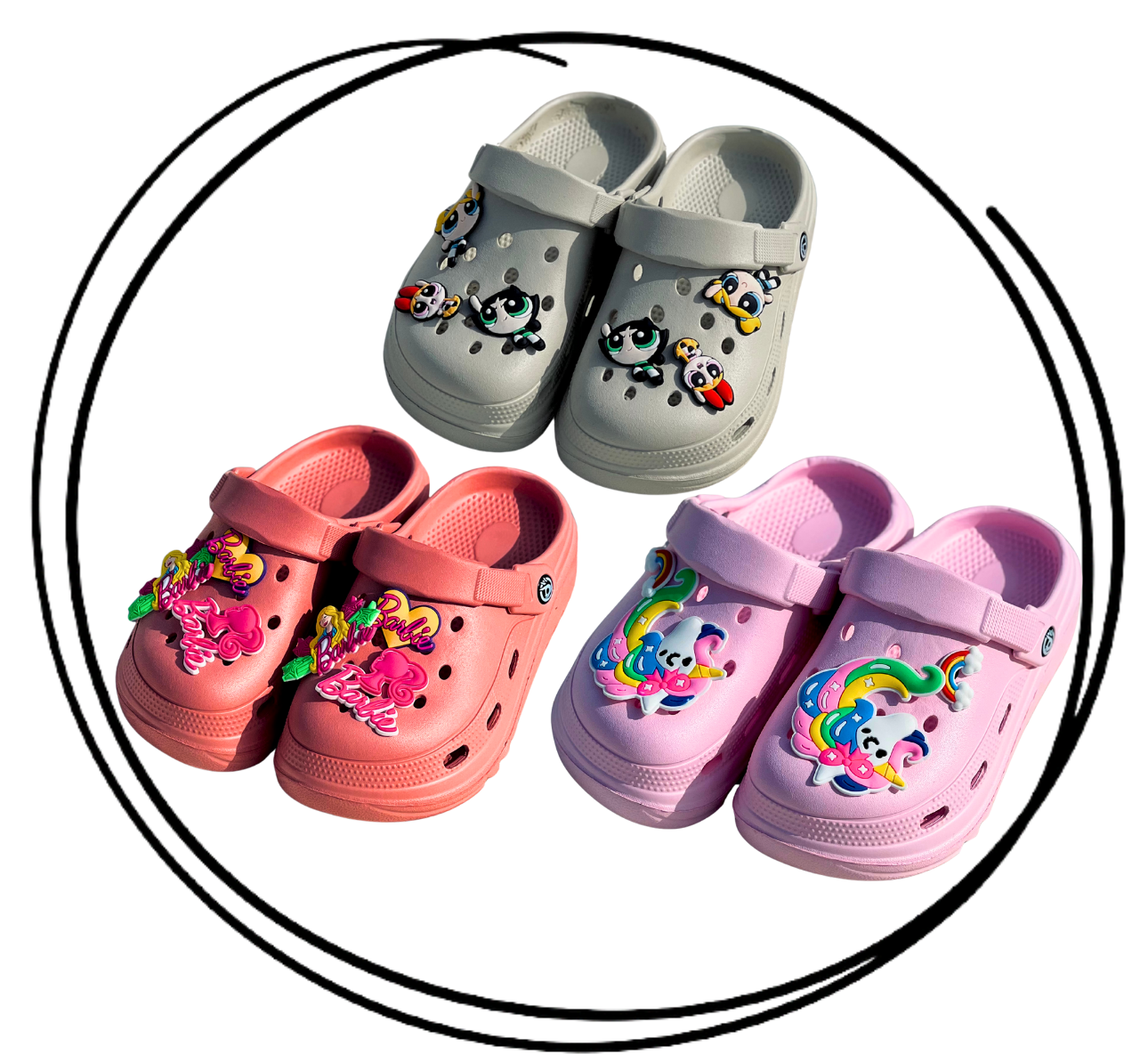 Zuecos Altos Pines 30/35: diseñados para quienes buscan comodidad y estilo únicos. Estos zuecos altos cuentan con pines divertidos que los hacen exclusivos y atractivos. Fabricados con materiales importados de alta calidad, son ultralivianos y perfectos para uso diario. Disponibles en talles 30 y 35, combinan funcionalidad y diseño para renovar tu calzado con un producto resistente y moderno. IMPORTANTE LOS PINES SON A MODO ILUSTRATIVO, PUEDEN VARIAR.