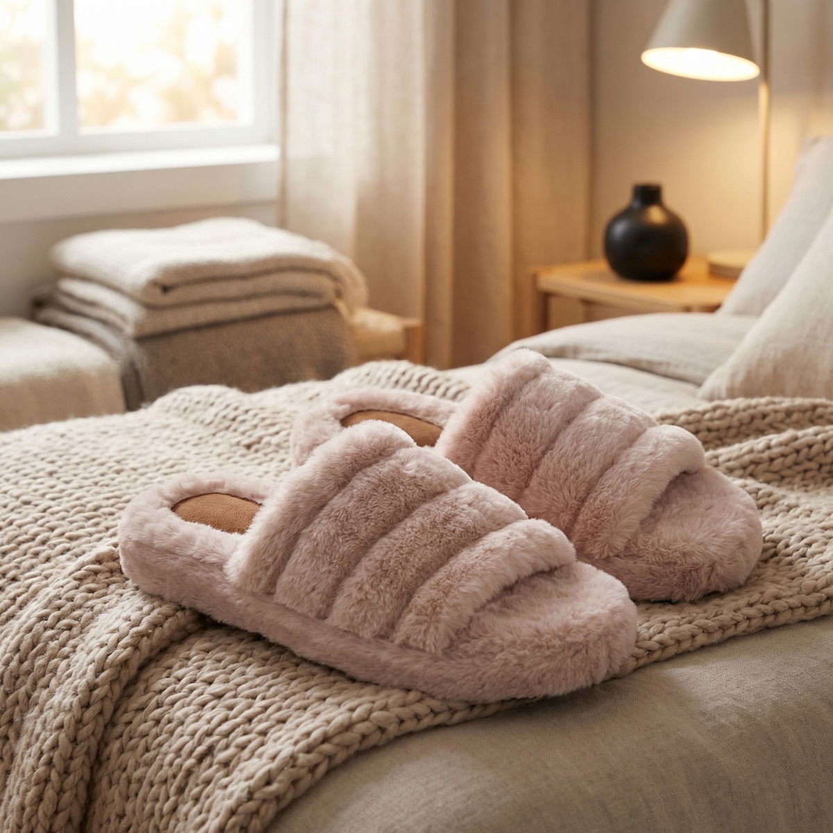 Pantuflones simil piel de conejo, punta abierta, super suaves, confortables, suela de aporximadamente 4 cm, diseño original directo de fábrica, calidad premium. Talles 35/36, 37/38 y 39/40. Colores rosa, gris, negro, blanco, manteca y beige.